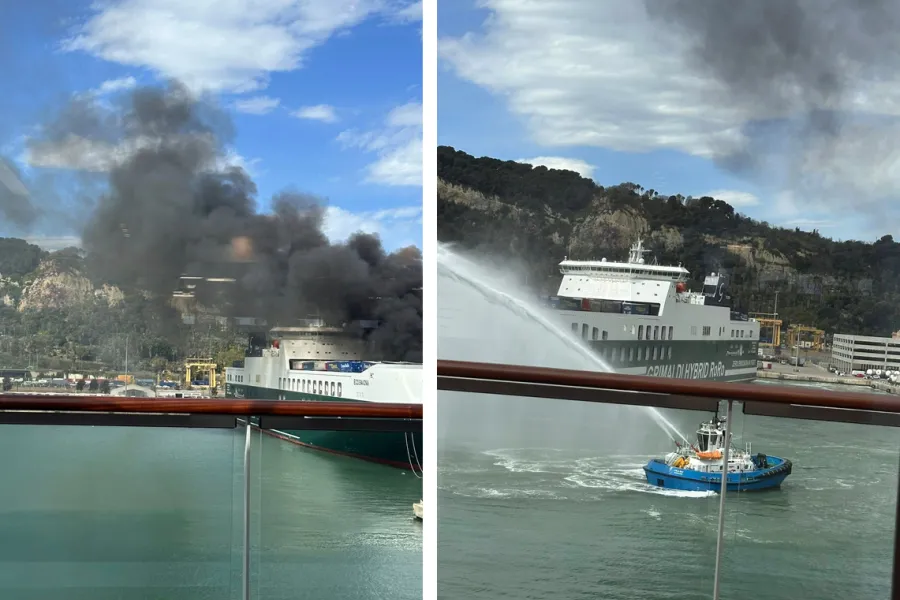 A fire at the Port of Barcelona on Sunday caused disruption to cruise operations, sending a large plume of black smoke across the port.