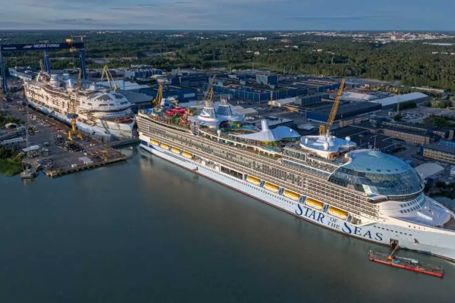 Royal Caribbean’s Icon-class story is moving fast. The first ship, Icon of the Seas (248,663 GT), entered service in January 2024, and the second, Star of the Seas (248,663 GT), is scheduled to arrive in August 2025. The fifth ship became “effective” at the yard on September 23, 2025, which marks the start of its official build phase — and Meyer Turku still has Icon 6 and Icon 7 lined up after that.