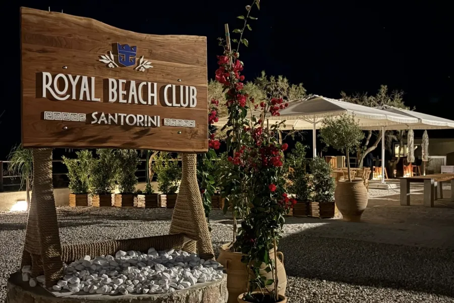 The Royal Beach Club Santorini welcomed its first guests on April 27, when passengers from the Odyssey of the Seas arrived as part of a full-day excursion called the “Ultimate Santorini Day.” The experience combines visits to the island’s most famous towns with time at the new beach club located on the black sand shores of Vlychada.